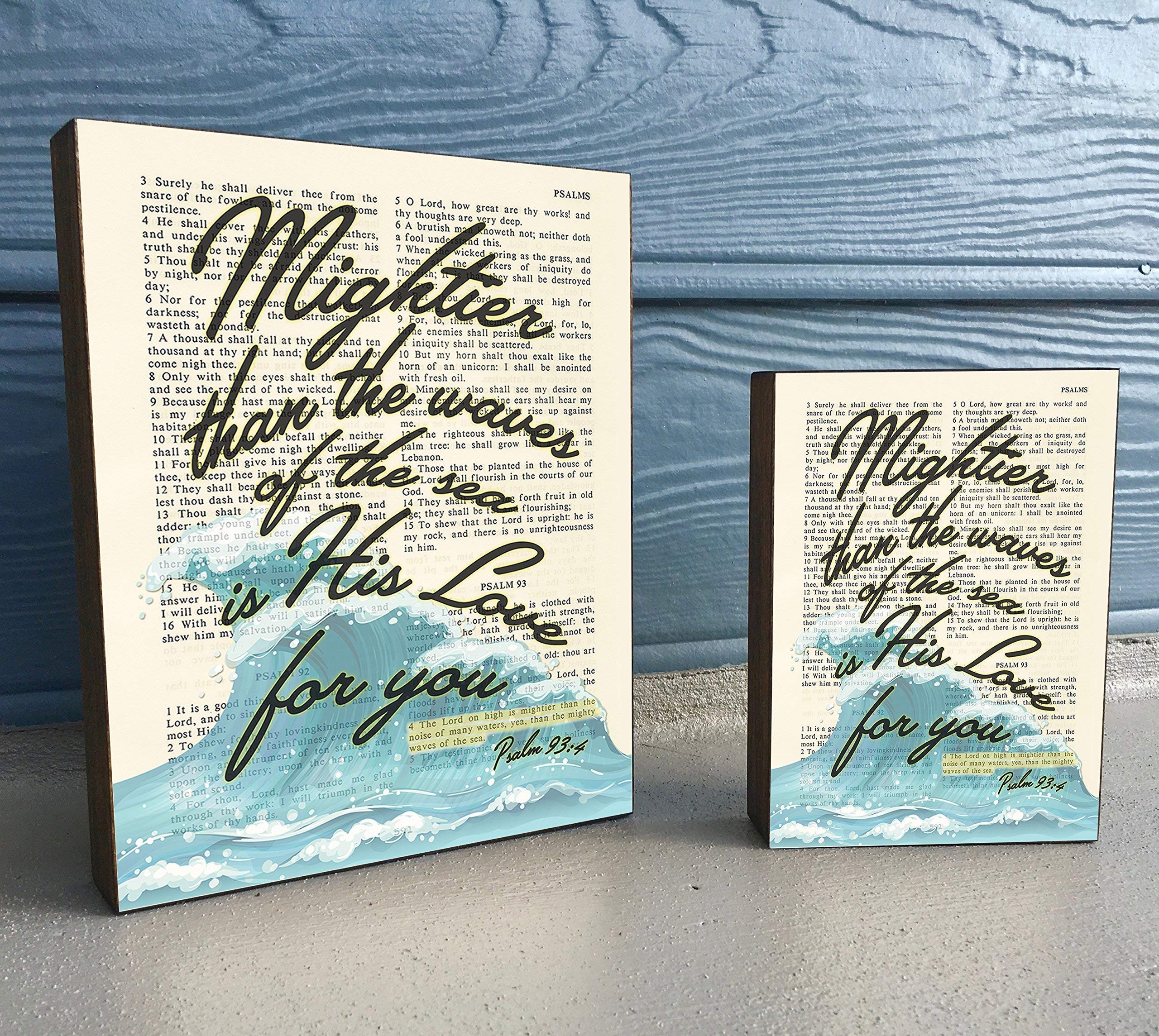 Buy Mightier Than The Waves Are His Love For You Psalm 93 4 Vintage Bible Verse Scripture Art Print On Wooden Block Sea Ocean Artwork Christian Home Wall Decor Sign Online