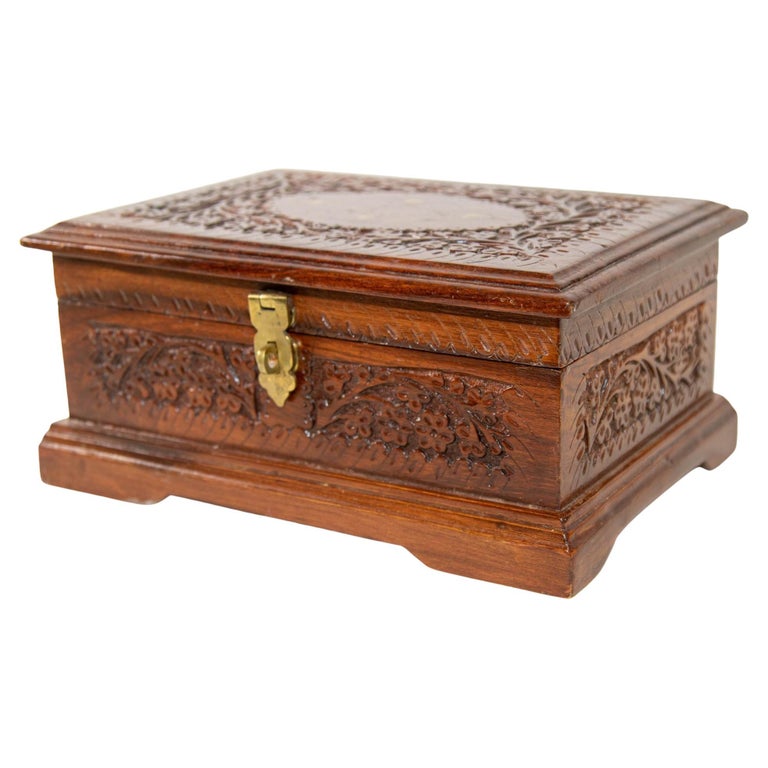 Large Vintage Heavily Carved Indian Jewellery Box Antiques Arena